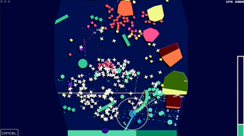 Playing in Chrome, at dinner time, and maybe already a bit at second snack time, the physics just seem to break down. The game slows to a crawl, but it seems like different components of the game don't slow down in sync. Things that shouldn't really be possible start happening, like projectiles bouncing off nothing while chunks hang still in the air.